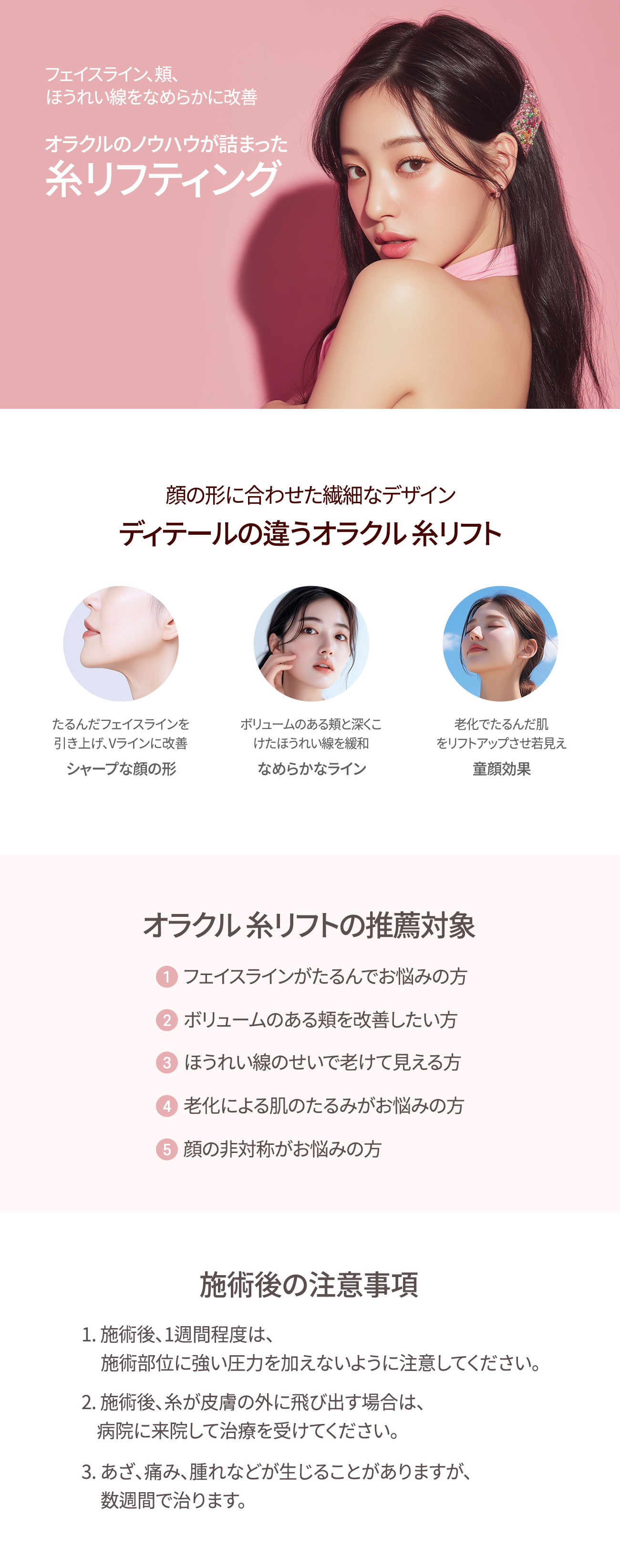 顔の形に合わせて繊細にデザインするオラクルの糸リフト